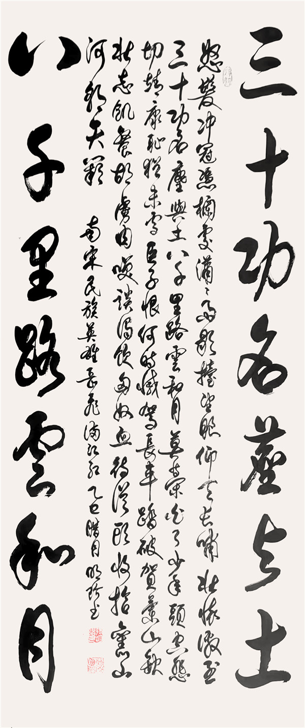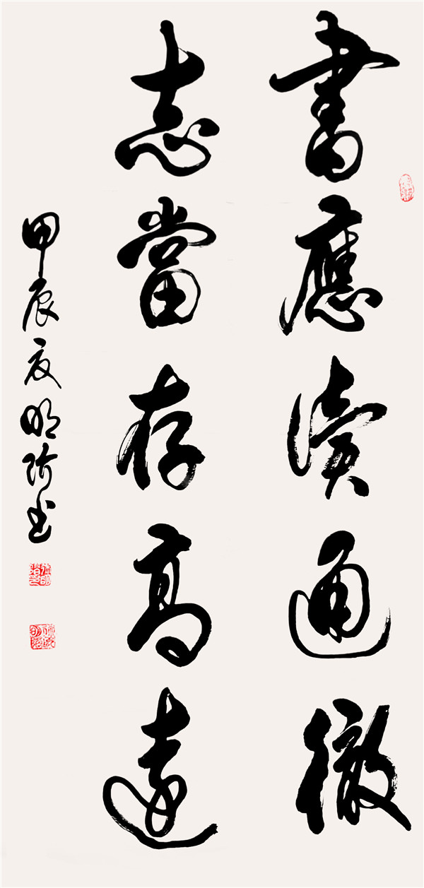 徐明阶的书法艺术,是一场传统笔墨与时代精神的深情对话。他以草书为矛,行楷为盾,在笔走龙蛇间勾勒出一位当代书家对 “书以载道” 的执着践行。